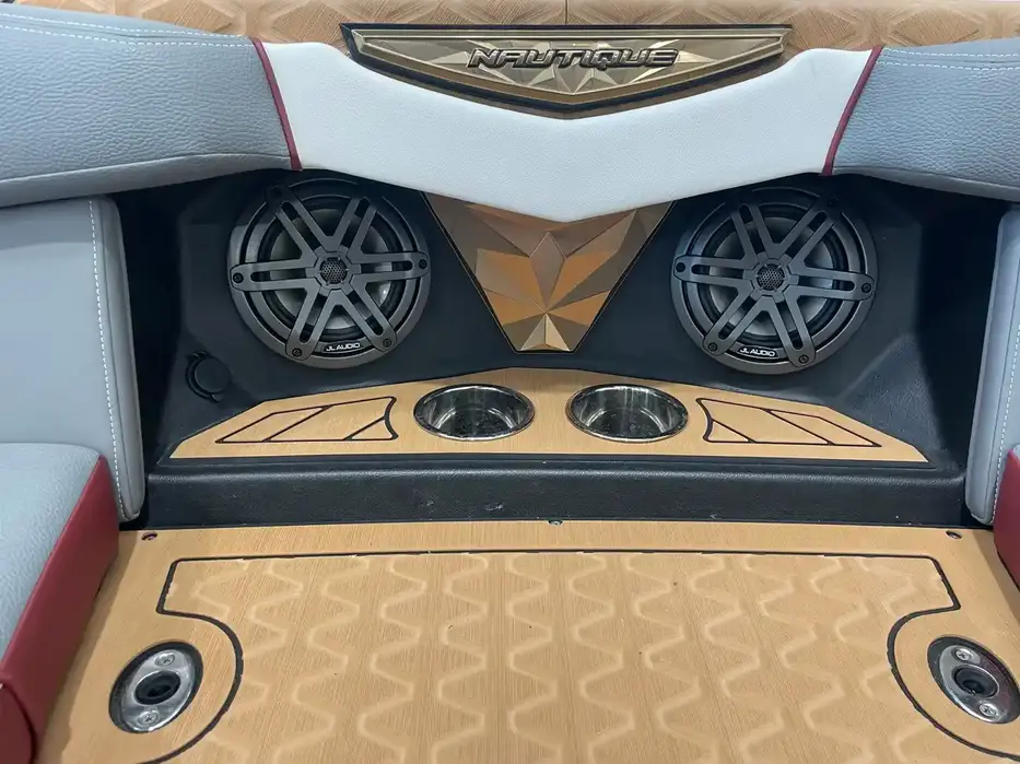 This stunning Ski Nautique is powered by a ZZ6 Coastal 450HP 6.2L Direct Injection engine and packed with premium features. It includes a trick ballast system, heater with defroster, Nautique Awareness Camera, Phender Pro (4), and a tandem spoke leather steering wheel. Enjoy comfort with heated driver and loveseat seating.